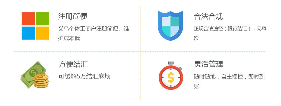 義烏個體工商戶注冊可用于結(jié)匯,不需要領(lǐng)取稅務(wù)登記證非常方便。卓信企業(yè)專業(yè)提供義烏代辦個體工商戶,義烏注冊個體工商戶等服務(wù),免費電話:400-0650008